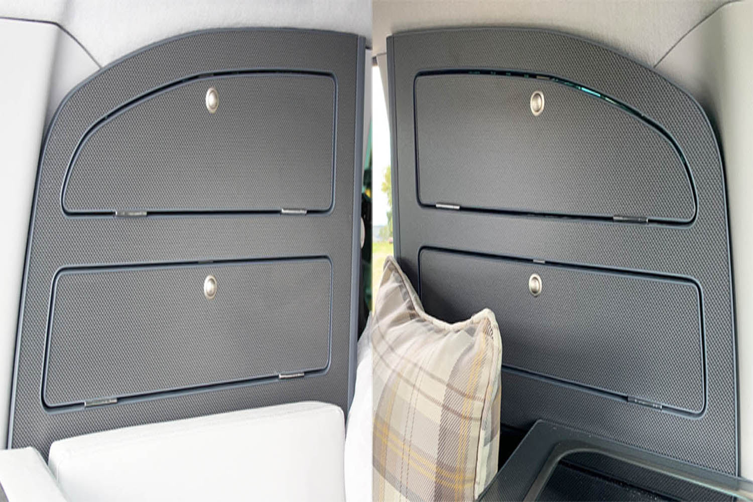 Available individually or as a pair these window boxes increase the amount of storage inside your Citroen Berlingo or Peugeot Partner. Each box has two shelves with each shelf accessible separately with easy opening drop down doors which close securely with push button locks. Finished in either Carbon, Puntinella or Driftwood. Please let us know which finish you would like when ordering.